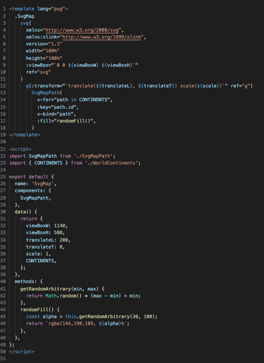 Vue.js gives you great opportunities to work with SVG, this is just a small example that shows how easy it is to make friends VUE with SVG and make a functional map.